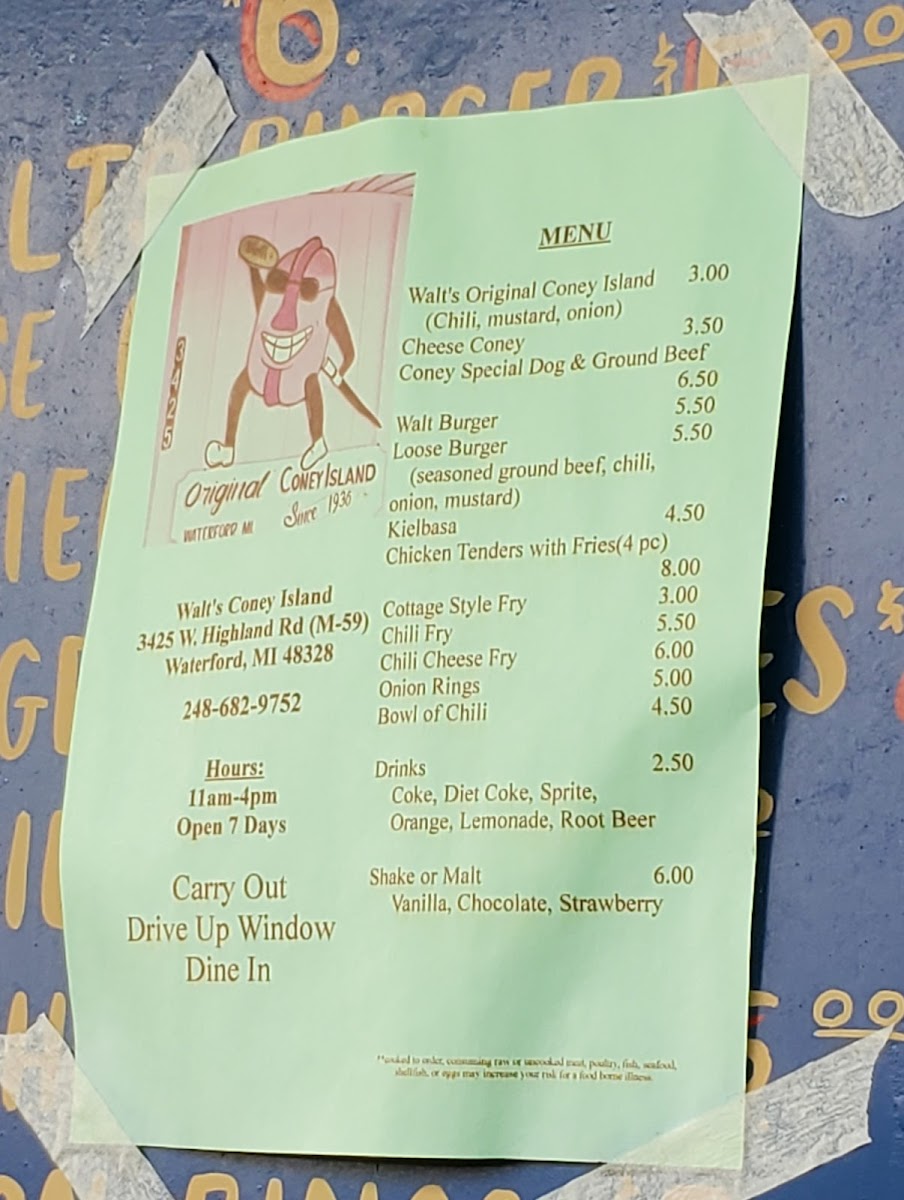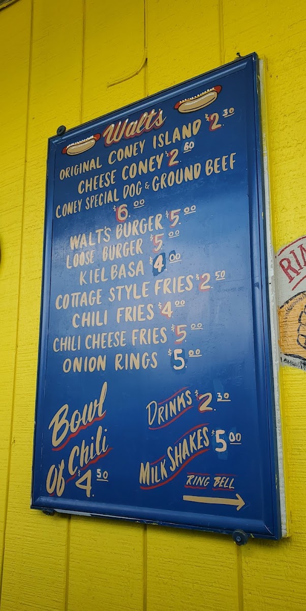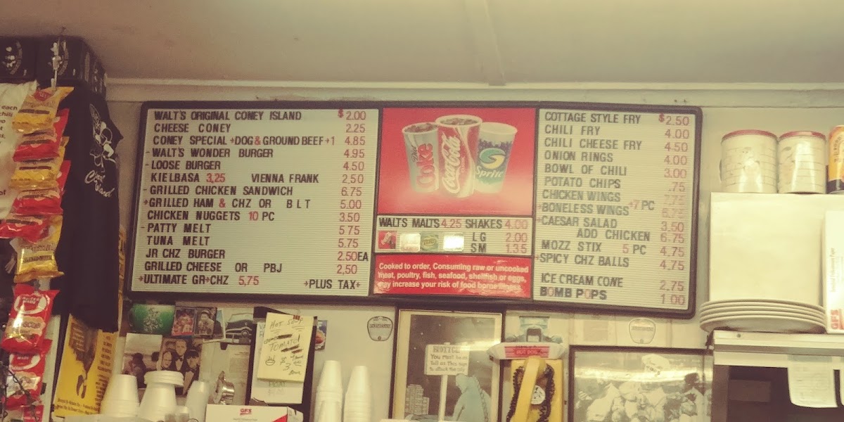 Walt's Coney Island Menu
